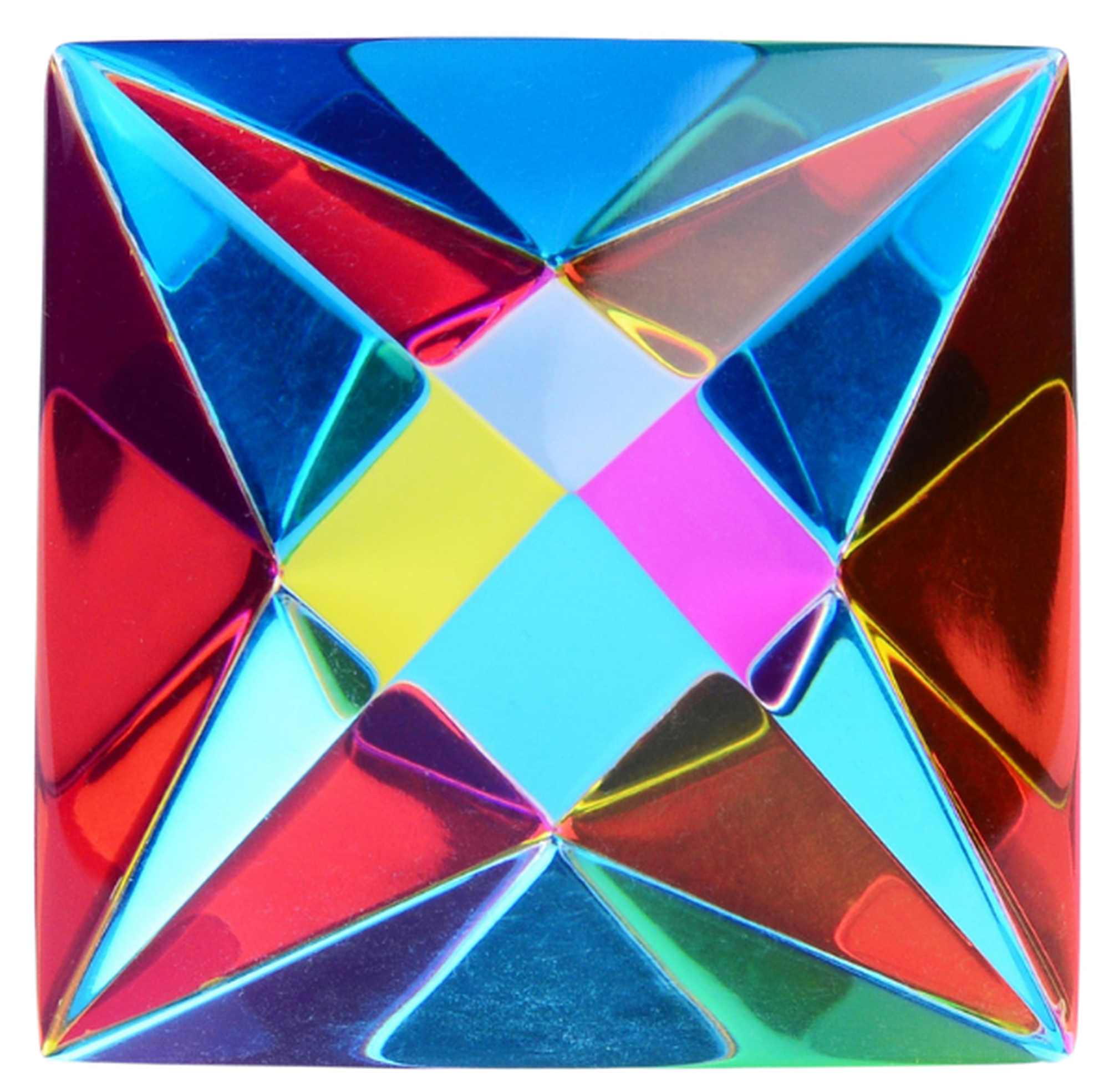 Spielzeuge und können Kinder und Erwachsene stundenlang beschäftigen und unterhalten. Aber Achtung: CMY-Oktaeder können süchtig machen! Dieser faszinierende Farbverlaufskörper scheint ein sich ständig änderndes Farbspektrum zu erzeugen, das Ihnen endlose neue Perspektiven bietet. Jede Seite des transluzenten Körpers ist mit elektromagnetisch subtraktiven Materialien beschichtet, die zunächst als Cyan, Magenta oder Gelb erscheinen. Mit einer Wendung des dichroitischen Körpers verwandeln sich die Primärfarben auf magische Weise in eine Reihe von weiteren Farben.