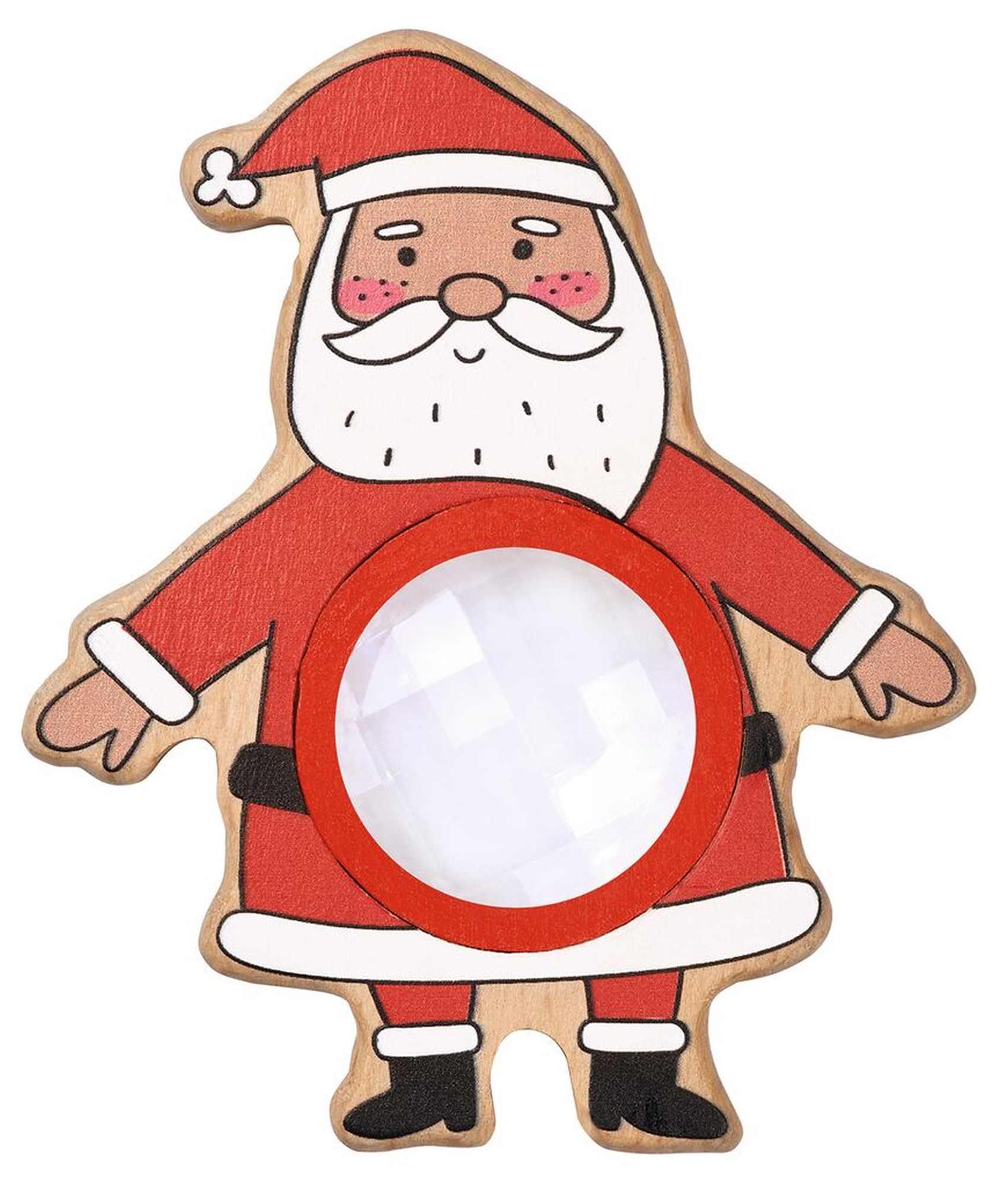 Ein sehr schönes Guckauge aus FSC®-zertifiziertem Holz mit Weihnachtsmotiv. Das perfekte Geschenk für den Nikolausstiefel, zu Weihnachten oder für den Adventskalender.