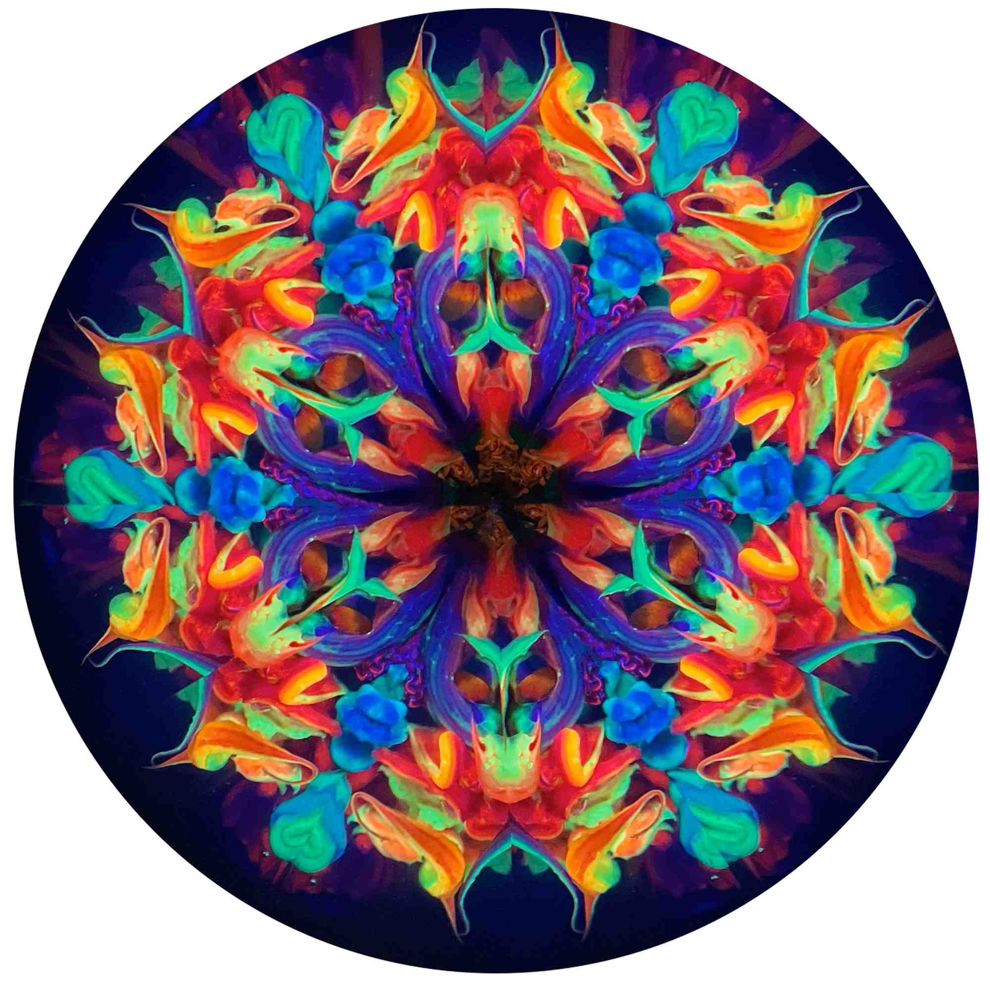 Qualitativ sehr hochwertiges Kaleidoskop mit Drehrolle und Beleuchtung, welches in Handarbeit vom Kaleidoskop-Künstler Roy Cohen aus Israel hergestellt wurde. Zur einzigartigen Optik des Kaleidoskops gehören leichte Unregelmäßigkeiten sowie feine Kratzer auf der Oberfläche. Jedes Exemplar ist ein Einzelstück und wird inklusive Ständer geliefert.