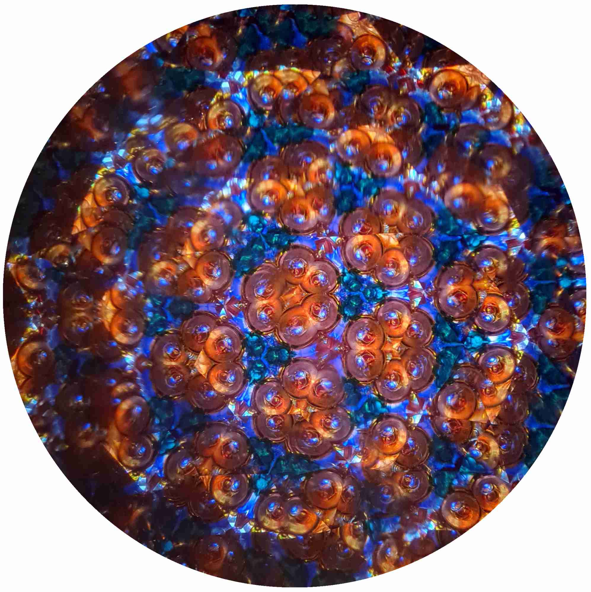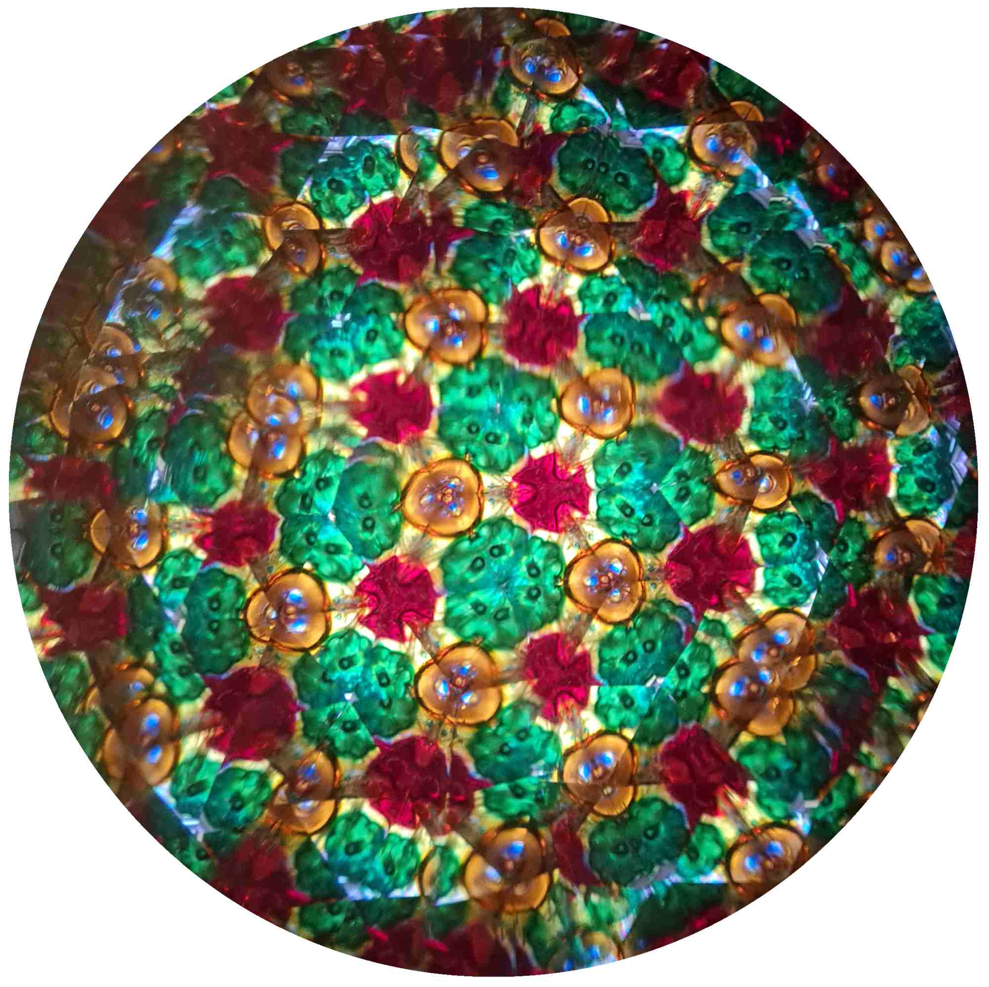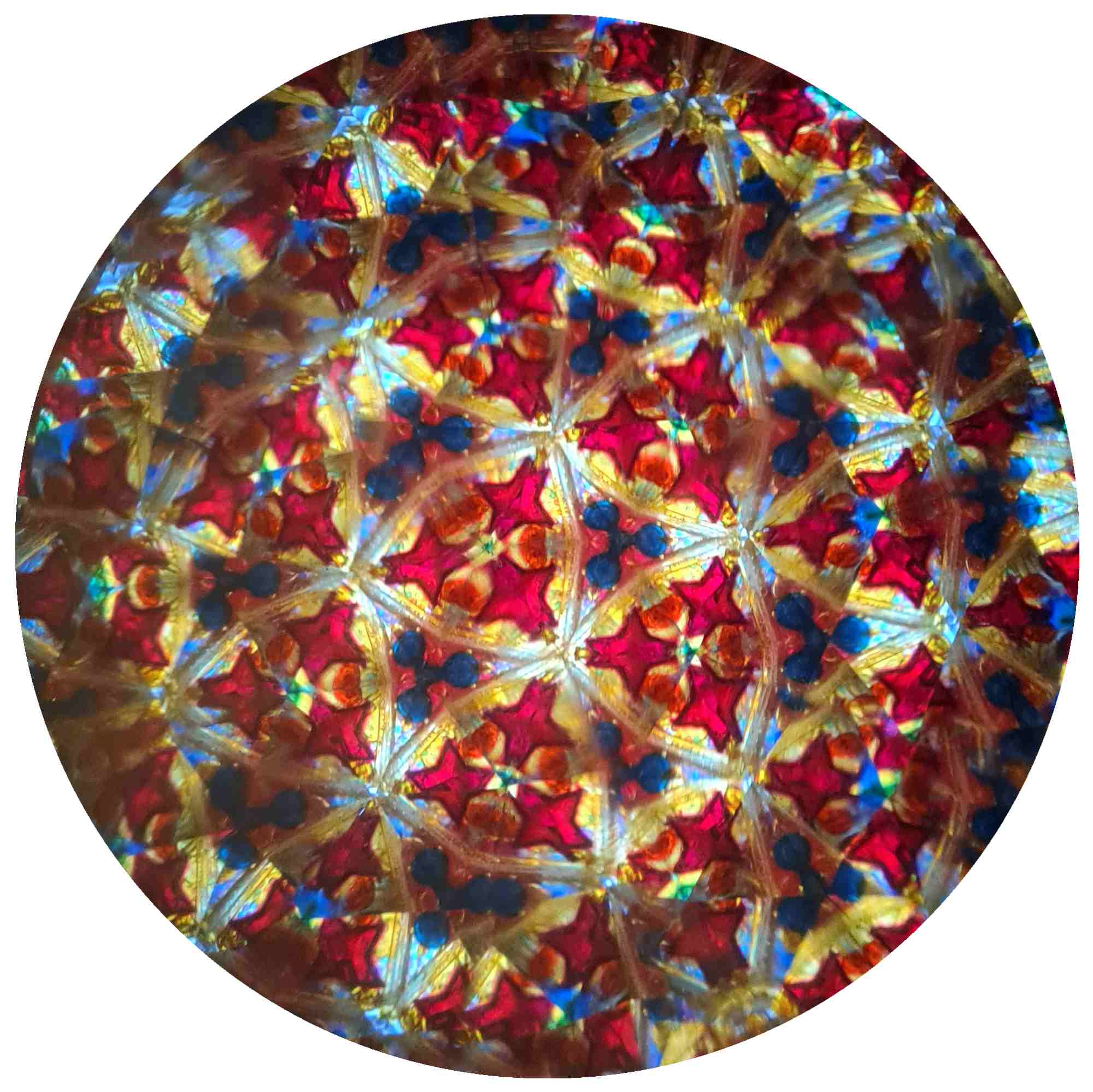 Qualitativ sehr hochwertiges Messing-Kaleidoskop mit Doppel-Drehscheibe, welches in Handarbeit vom Kaleidoskop-Künstler Roy Cohen aus Israel hergestellt wurde. Zur einzigartigen Optik des Kaleidoskops gehören leichte Unregelmäßigkeiten sowie feine Kratzer auf der Oberfläche. Jedes Exemplar ist ein Einzelstück und wird inklusive Ständer geliefert.