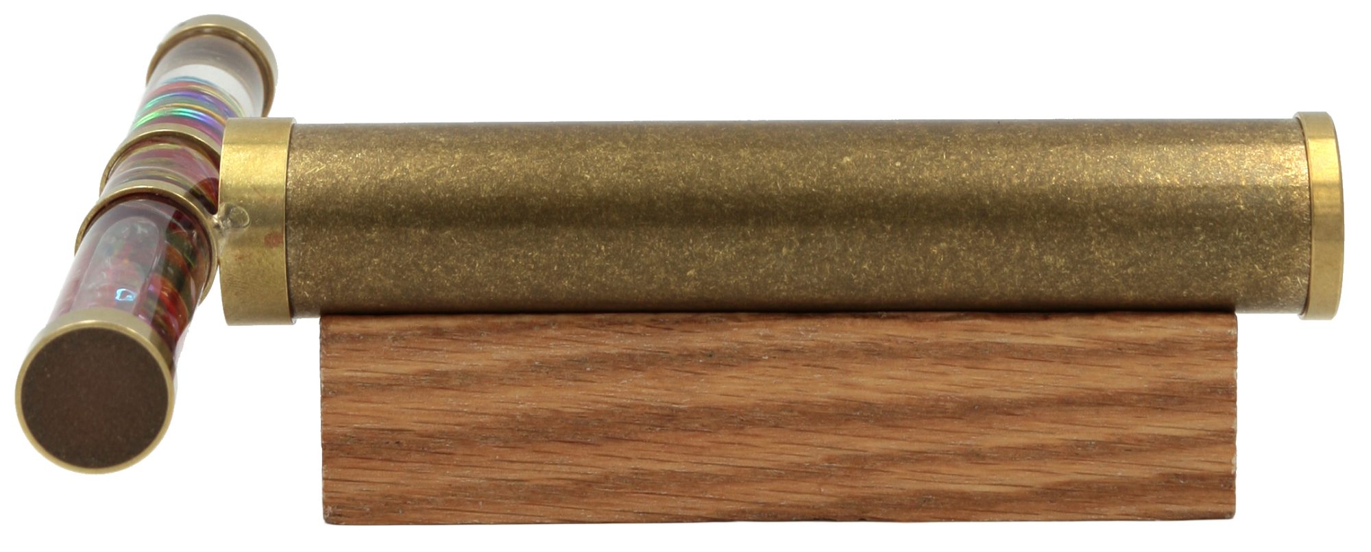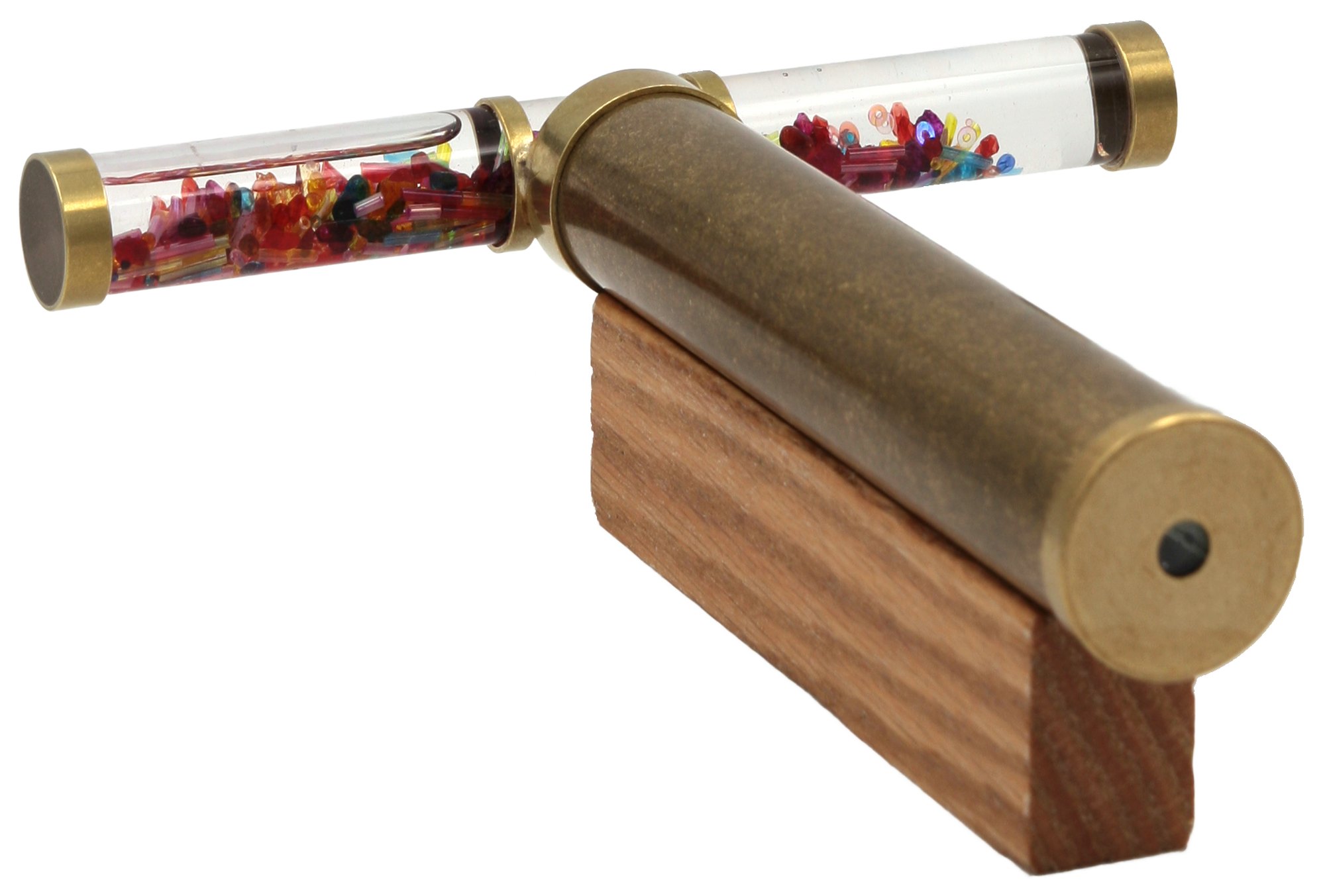 Qualitativ sehr hochwertiges Messing-Kaleidoskop mit Zauberstab, welches in Handarbeit vom Kaleidoskop-Künstler Roy Cohen aus Israel hergestellt wurde. Jedes Exemplar ist ein Einzelstück und wird inklusive Ständer geliefert.